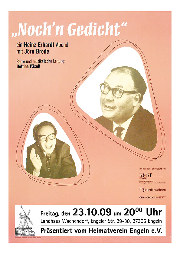 Eine Hommage an den unvergessenen Kabarettisten der ersten Stunde der BRD. Heinz Erhardt ist einzigartig, doch seine Lieder und Texte leben auch ohne ihn. Jörn Brede lässt die Werke des großartigen Künstlers wieder aufleben; Sinniges und Hintersinniges, Ernstes und Urkomisches, denn "Humor ist eigentlich eine ernste Sache...". Brede reicht in Mimik, Gestik und vor allem stimmlich ganz dicht ans Original. Den Oberkörper leicht vorgebeugt, eine Schulter hochgezogen, die Arme wild hin und her schlenkernd, der Griff zur Hornbrille und die unnachahmliche Diktion, in der er Erhardts verschraubte Wortspiele und skurrile Verse zum Besten gibt - all das erinnert nicht nur an den Wirtschaftswunderkomiker, man glaubt glatt an eine Inkarnation des 1979 verstorbenen Allroundtalents, eine Art Wiedergänger mit leicht veränderten Ausmaßen, denn von der Statur her ist Brede ihm nun wirklich nicht ähnlich. Eine weitere Besonderheit dieser Abende: die beliebten Schlager aus den Filmen mit Heinz Erhardt! Charmant-witzige Liebeslieder, Stimmung und Swing der 50er und 60er Jahre, live begleitet von einem Pianisten, versetzen Sie zurück in die Zeit des Wirtschaftswunders und machen jeden dieser Abende zu einem unvergesslichen Erlebnis. Ein "Best of" mit hohem Unterhaltungswert! |