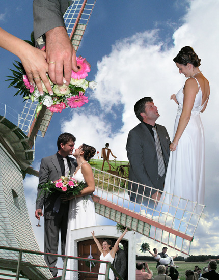 | Ihre Hochzeit als einzigartiges Kunstwerk Lassen auch Sie sich aus Ihren Erinnerungsfotos ein künstlerisches Composing erstellen, das Ihre Hochzeit als indivisuelle Bild-Geschichte erzählt! Auf Wunsch fotografiert "Die Composerin" auch bei Ihrer Hochzeit. |