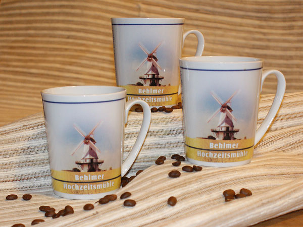 Dieser Kaffeebecher mit dem Behlmer Mühlenmotiv lässt Ihren Tag schon mit einer schönen Erinnerung beginnen.